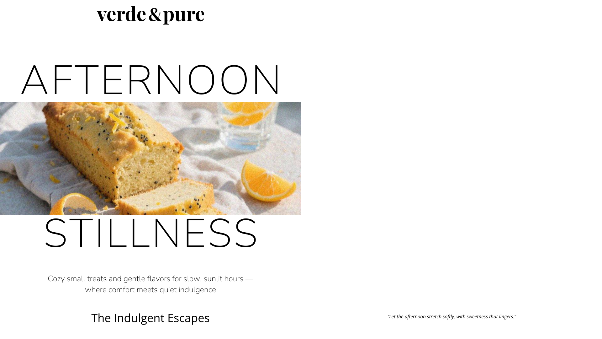 Each eBook is a curated collection of nourishing, easy-to-follow recipes paired with imagery and rituals to inspire slow, intentional living. You'll find morning elixirs, vibrant bowls, soothing dinners, and sweet endings—all refined, all plant-based.