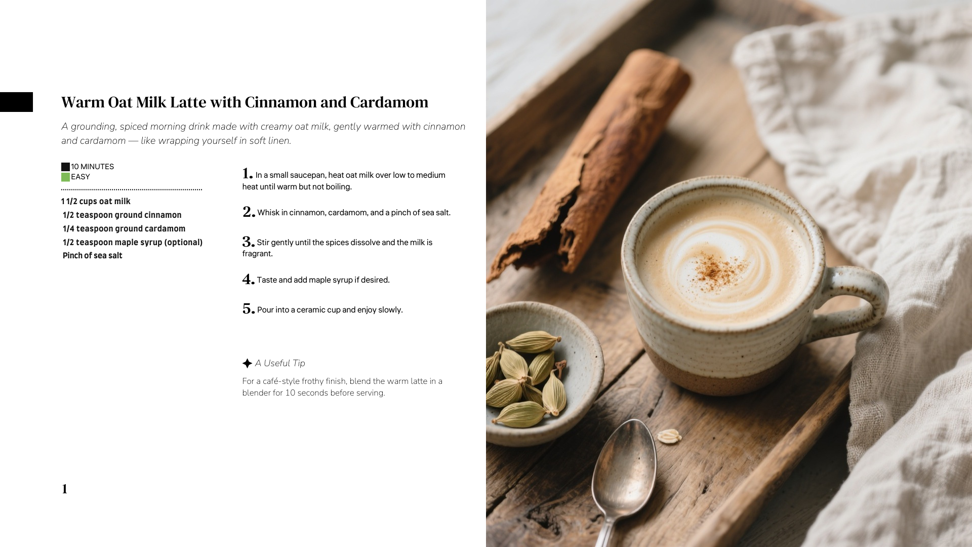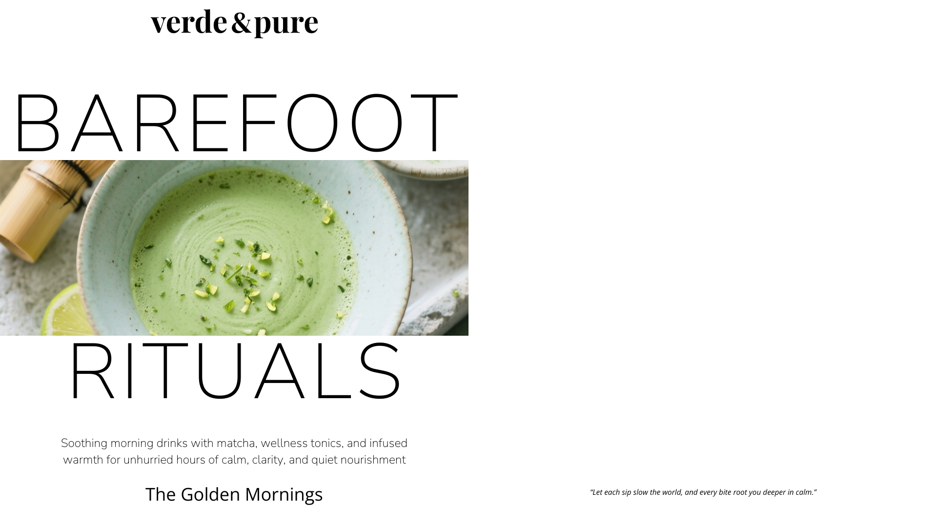 Each eBook is a curated collection of nourishing, easy-to-follow recipes paired with imagery and rituals to inspire slow, intentional living. You'll find morning elixirs, vibrant bowls, soothing dinners, and sweet endings—all refined, all plant-based.