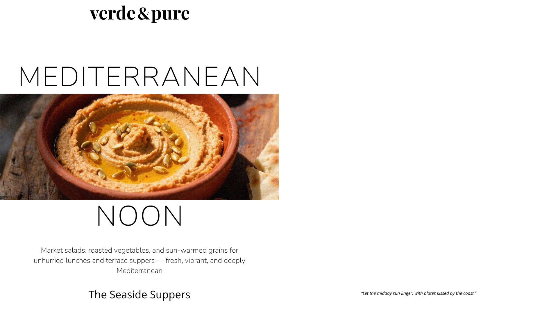 Each eBook is a curated collection of nourishing, easy-to-follow recipes paired with imagery and rituals to inspire slow, intentional living. You'll find morning elixirs, vibrant bowls, soothing dinners, and sweet endings—all refined, all plant-based.