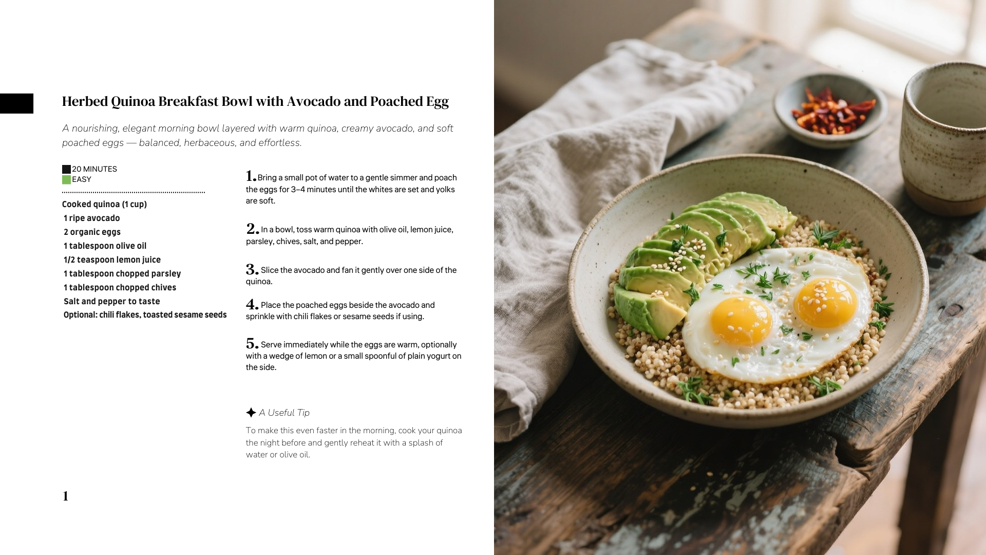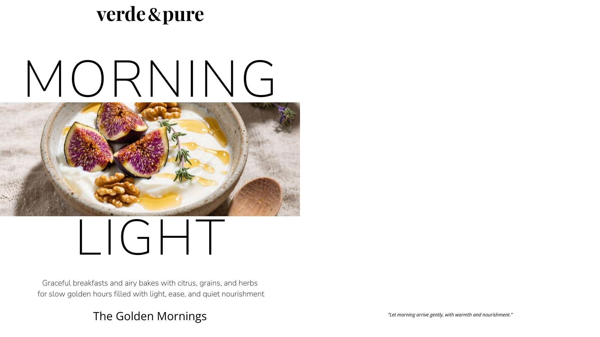 Each eBook is a curated collection of nourishing, easy-to-follow recipes paired with imagery and rituals to inspire slow, intentional living. You'll find morning elixirs, vibrant bowls, soothing dinners, and sweet endings—all refined, all plant-based.